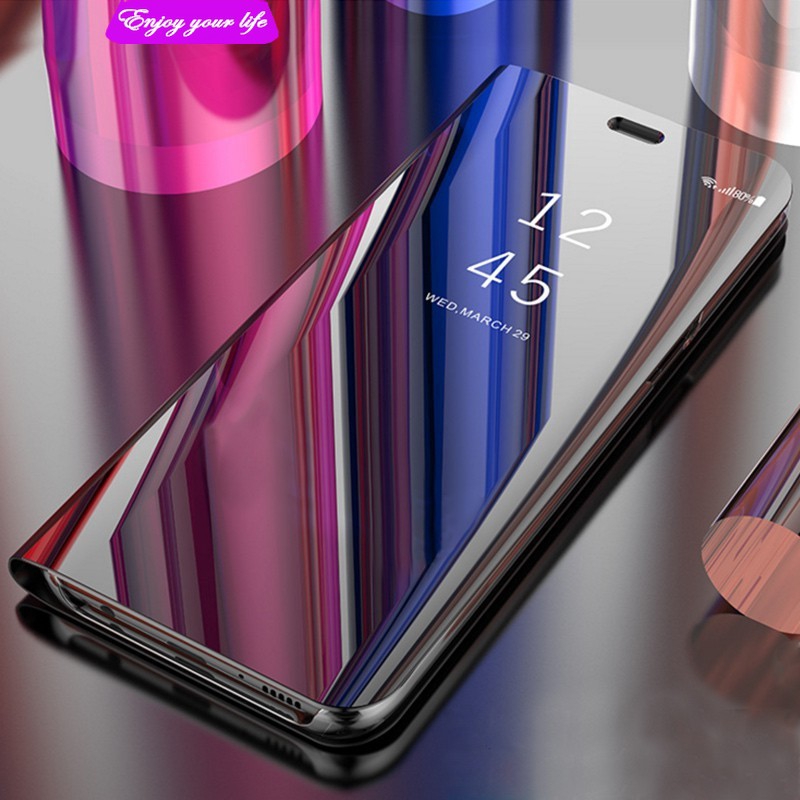 Ốp điện thoại có nắp gập thiế kế tráng gương thời trang cho Samsung Galaxy A10 A20 A30 A40 A50 A70 A8S